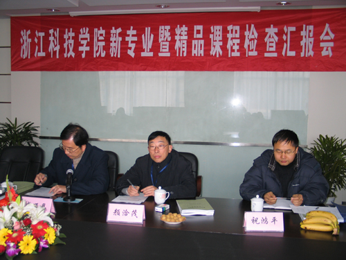 12月13日上午,学校在小和山校区行政楼230室召开“新设专业暨精品课程检查”汇报会。申搏2个2003年新设专业信息与计算科学、制药工程,3门2003年、2004年省精品课程物理化学、VB程序设计、无机及分析化学接受了省教育厅检查。省教育厅委派的浙江工业大学副校长盛颂恩教授为组长的四人检查专家组成员、浙江省教育厅高教处祝鸿平以及院党委书记徐志平、院长杜卫、副院长龚建立、有关职能部门负责人和各新设专业和省精品课程负责人出席汇报会。专家组组长盛颂恩和副院长龚建立分别主持会议。