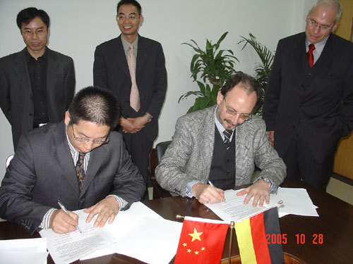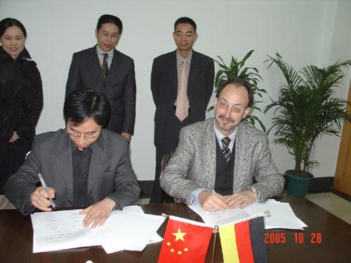 10月28日至10月29日,德国埃富特应用科学大学校长基尔 (Prof. Dr.Kill) 教授和生产与物流研究所所长瓦格纳(Prof. Dr. Wagner)教授来申搏访问,与申搏校长杜卫教授、副校长龚建立教授以及机械学院、经管学院领导举行了会谈。双方就深化两校合作交流,特别是就共建物流工程、车辆工程专业进行了深入、细致的探讨,并签署了物流工程、车辆工程的两项合作协议。根据合作协议,埃富特应用科学大学将接收并资助申搏两个专业各12人月的教师进修,派遣教授到申搏进行合作研究、讲学及共建实验室,双方将互派学生到合作院校进行为期1至2年的学习。埃富特应用科学大学校长一行还参观了机械学院、电气学院、经管学院的实验室。