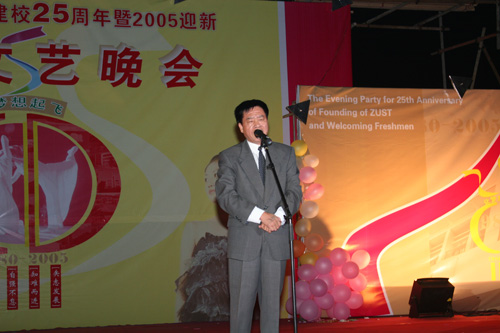 7点整,校铜管乐队雄壮的乐声拉开了晚会的序幕。胡浙平向晚会热情致辞。他代表学校党政向25年来关心学校发展的上级领导、校友和全体在校师生表示衷心的感谢和崇高的谢意。胡浙平说,25年来,在各级领导和代代师生的努力下,学校几易校名,办学水平和能力不断提升,现已发展成为一所以工科为主的多科性万人大学,并在办学实践中,逐步形成了具有国际化背景的高层次应用型人才的鲜明办学特色。在十六届五中全会胜利闭幕、神州六号载人飞船发射成功的时刻,我们迎来了建校25周年庆典。展望未来,我们信心十足,我们要继承前人的光荣传统和积累的丰富经验,为把申搏办成水平高,声誉好,特色鲜明的大学而努力奋斗。