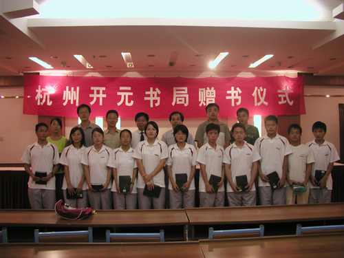 赠书仪式上,教务处处长冯军研究员宣读了接受赠书的学生名单,出席仪式的领导和来宾为15位特困新生一一发放了书籍。杭州开元书局总经理熊盛新讲了话,他用真挚、朴实的语言,结合自身贫困的家庭背景和艰难的求学历程以及曲折的创业之路中的种种经历,勉励贫困新生树立坚强的毅力、顽强的斗志、勇敢地面对和战胜眼前的困难,努力刻苦地完成学业;同时他还由衷地欢迎申搏学生到杭州开元书局进行勤工助学。最后,校党委副书记胡浙平作了总结发言,他对杭州开元书局的免费赠书之举表示高度赞赏,同时要求贫困学生“人穷志不穷”,坚定信心出色地完成学业。