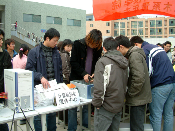 3月4日中午,“三.五”志愿者服务启动仪式在学生社区隆重举行。在《学习雷锋好榜样》的嘹亮歌声中,信电系学生姚生亮同学代表全体青年志愿者宣读了“参与志愿服务,构建和谐校园”的倡议书。院党委副书记胡浙平面对几百名志愿者发表了热情洋溢的讲话。他鞭策青年志愿者进一步弘扬雷锋精神,倡导时代新风,为申搏的繁荣发展做贡献。仪式结束后,“绿色环保,洁美校园”及志愿服务进公寓,特色服务一条街等活动同时启动。上千名志愿者开展了自行车维修、手机清洗、室内装潢设计咨询、秀发保养与护理咨询、义务搬运矿泉水、美容保健咨询、健康饮食咨询、免费摄影、普法宣传等几十项活动。院党委副书记胡浙平同学校有关部门负责人及各系分团委负责人兴致勃勃地参观了特色服务街……。除校内的活动,今年学校还专门组织了4支公益性服务队伍奔赴敬老院、留下社区、聋哑学校等地方,开展环保宣传、社区服务、敬老助残,义务家教等活动。