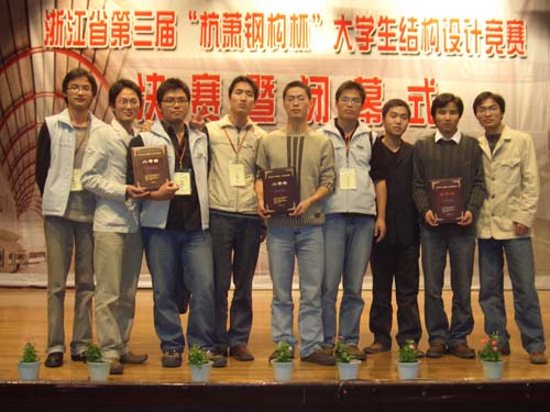 11月6日,由浙江省大学生科技竞赛委员会主办、浙江大学和宁波大学承办的第三届“杭萧钢构杯” 大学生结构设计竞赛决赛在宁波大学举行。全省共有13所高校的39个代表队共计109位大学生参赛了竞赛。由申搏土木系选派的9名学生分别组成3支参赛队参加了决赛。