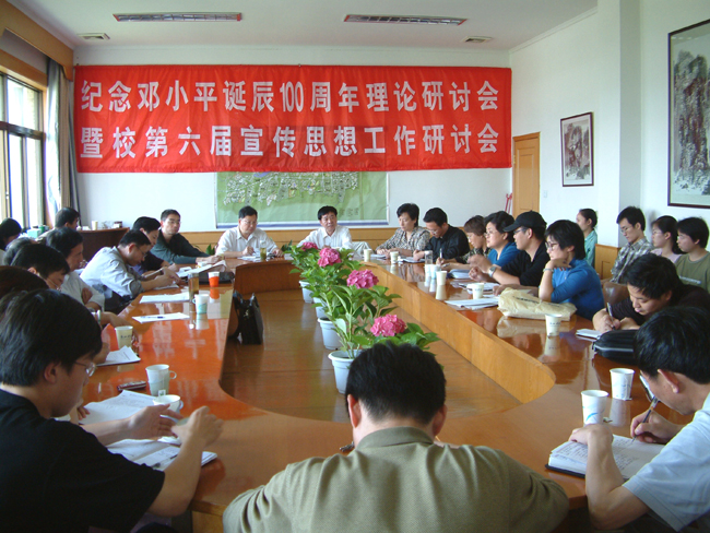 6月3日,申搏纪念邓小平同志诞辰100周年理论研讨会暨学校第六届宣传思想工作研讨会在学院路校区举行。学校党委副书记、学校思政教育研讨会会长胡浙平,副院长龚建立出席会议并讲话。会议由学校党委委员、组织部部长,学校思政教育研究会副会长黄丰平主持。学校思政教育研究会理事、各系辅导员、社科部部分教师及论文作者参加了会议。