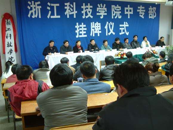 挂牌仪式上,副院长龚建立宣读了《浙江科技学院关于设立浙江科技学院中专部的通知》,院党委委员、组织部长黄丰平宣读了关于中专部干部任命文件。