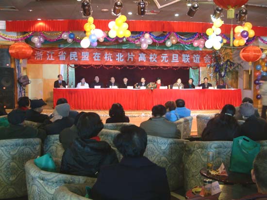 12月28日,浙江省民盟在杭北片高校在浙江科技学院小和山校区举行元旦联谊会。杭州商学院、中国计量学院、浙江工程学院、浙江财经学院、浙江教育学院、杭州电子工业学院、杭州师范学院、浙江经济贸易职业学院、浙江经济职业学院、浙江工业大学、浙江科技学院等11所高校的200余名民盟盟员参加了联谊。全国政协常委、省人大常委会副主任、中国工程院院士、省民盟主委、浙江科技学院名誉院长孙优贤,省民盟常务副主委、省政协常委茹宝琪,省民盟秘书长刘文漪出席了联谊会,浙江科技学院党委书记金光远、院长沈莲清、副院长龚建立、蒋家新、院纪委书记鲁凤、院党委组织部部长黄丰平、院党委统战部部长唐思鲁到会欢迎兄弟院校朋友的到来。
