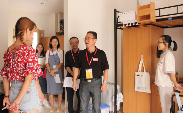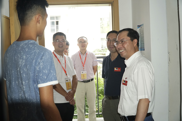 当天,校党委书记龚建立、校长叶高翔等领导在相关职能部门负责人的陪同下,来到迎新现场指导慰问,他们详细查看了各迎新接待点,向迎新工作人员询问新生报到情况,嘱咐相关部门和学院一定要对新生报到细节、饮食住宿充分考虑,为新生和家长提供便利。校领导还来到宿舍,走访看望2018级新生和家长,向他们介绍学校特色和发展申搏。校领导勉励新生,及早适应新生活,珍惜时光,努力学习,用青春书写精彩人生。