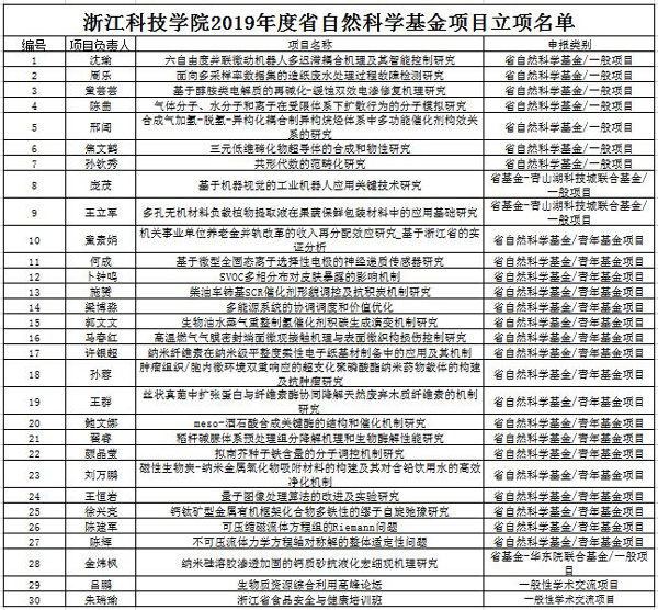 近日,浙江省科学技术厅、浙江省自然科学基金委员会发布“关于2019年度浙江省自然科学基金拟资助项目公示的通知”,申搏共有30个项目获浙江省自然科学基金项目立项,较去年有明显提升。
