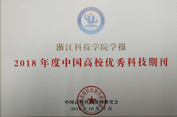 日前,在中国高校科技期刊研究会举办的2018年度中国高校杰出·百佳·优秀科技期刊遴选活动中,申搏《浙江科技学院学报》获“中国高校优秀科技期刊”。