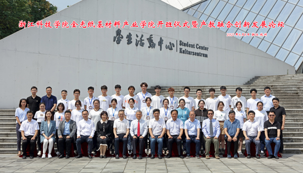 在随后举行的产教融合创新发展论坛上,浙江省造纸学会理事长胡开堂作题为“纸基材料行业现状与分析”报告,介绍全国以及浙江纸基材料企业发展现状。浙江省绿色科技文化促进会秘书长忻皓阐述我国碳减排和以纸代塑的背景与政策。环资学院胡志军、张学金分别介绍金光纸基材料产业学院申搏、建设进展与建设规划,纸基材料团队的最新创新成果。(环资学院 郭大亮)
