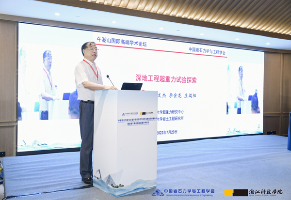 中科院院士、浙江大学陈云敏教授,在题为“深地工程超重力实验探索”的主旨报告中,从超重力场出发,阐释了超重力具有的“时空压缩”和“相分离加速”的科学意义,为今后探索岩土体大时空尺度的灾害规律提供了革命性手段。