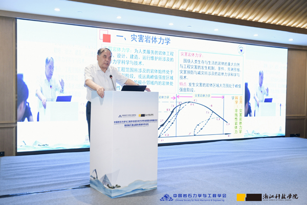 中科院院士、太原理工大学赵阳升教授,以“灾害岩体力学的若干研究与思考”为题,从力学的角度对灾害岩体力学所面临的三个关键科学问题进行深入的探讨,重点阐述岩体灾害预报的重要性与挑战。
