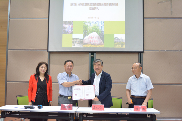 6月25日-7月1日,第五届汉语国际师资培训班在杭举行,副校长冯军、万健分别出席开班和结业仪式,并为主讲专家颁发校客座教授聘书。