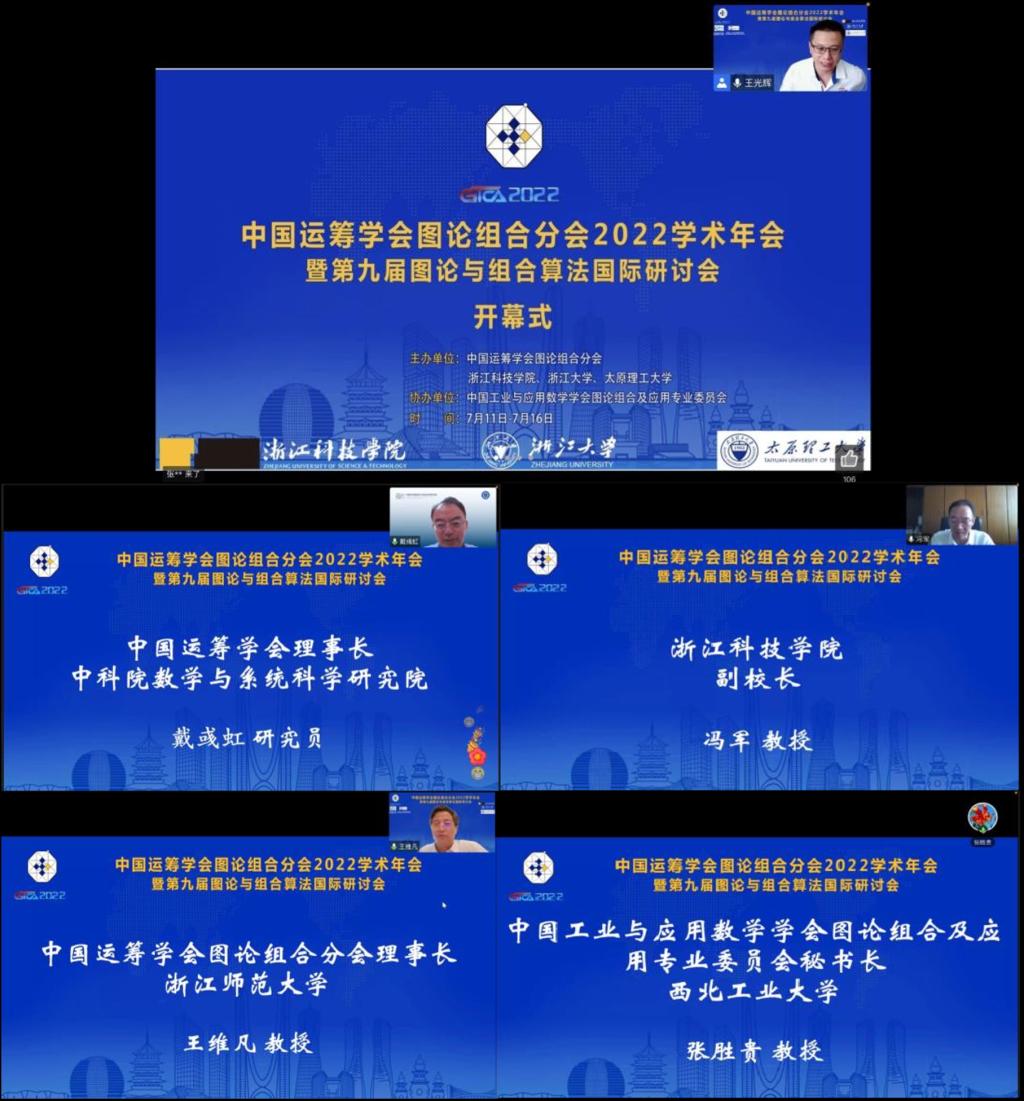 7月11-16日,由中国运筹学会图论组合分会主办,浙江科技学院和浙江大学共同承办的中国运筹学会图论组合分会2022学术年会暨第九届图论与组合算法国际研讨会以线上线下结合方式举行。