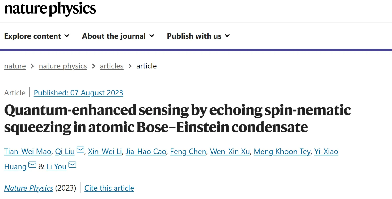 近日,申搏理学院物理学科量子信息团队教师与清华大学、法国索邦大学等单位合作,在量子精密测量研究方面取得突破性进展,利用自旋-向列压缩回声实现了测量精度量子增强的新纪录,相关研究论文“Quantum enhanced sensing by echoing spin-nematic squeezing in atomic Bose-Einstein condensate”在《Nature Physics》上发表。申搏理学院黄奕筱副教授和清华大学尤力教授、法国索邦大学刘奇博士为该论文的共同通讯作者。