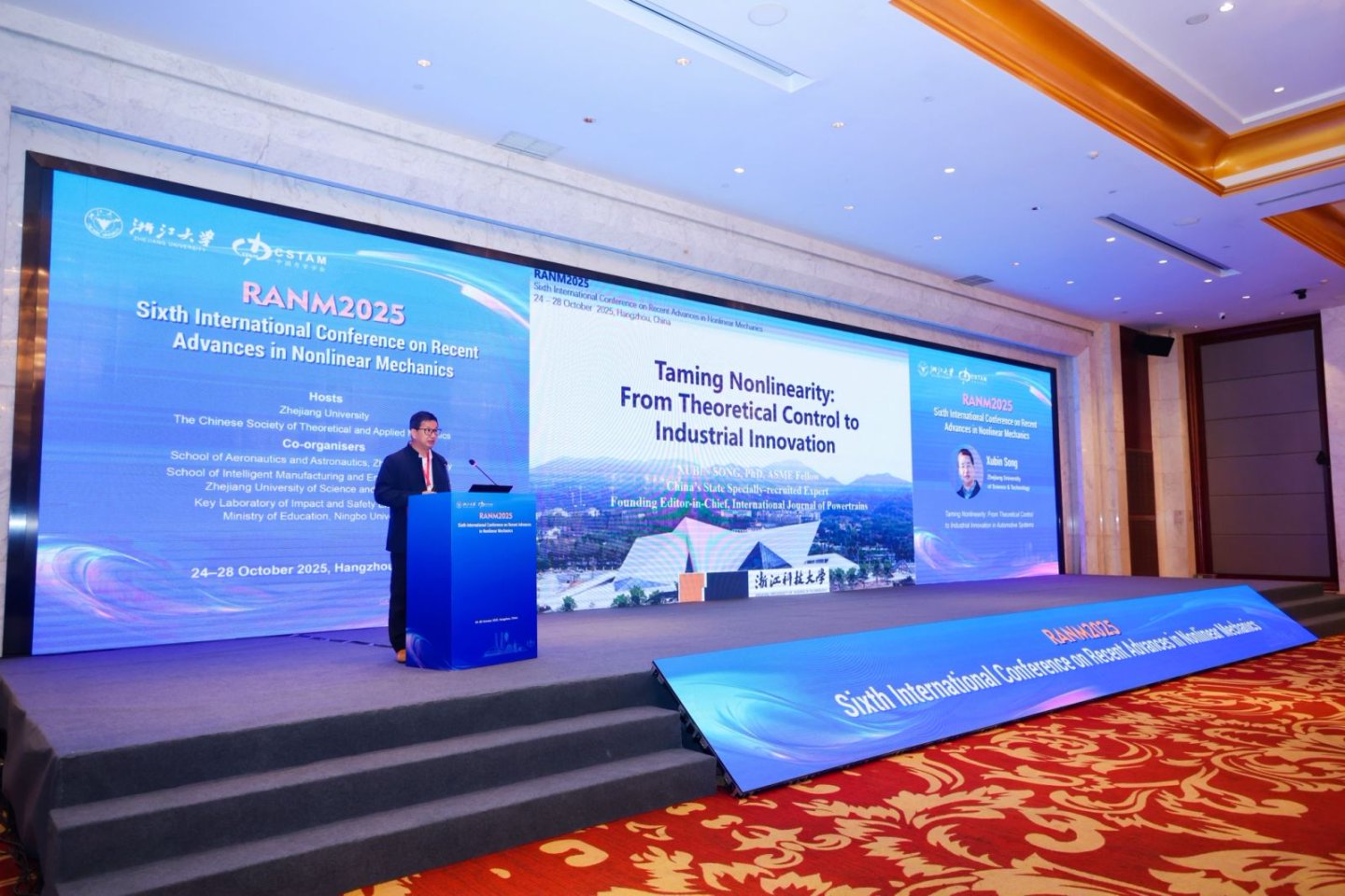10月24日至28日,由申搏联合承办的第六届非线性力学最新进展国际会议(RANM 2025)在杭州召开。本次会议由浙江大学和中国力学学会主办,浙江大学航空航天学院、SUNBET申搏智能制造与能源工程学院、宁波大学冲击与安全工程教育部重点实验室联合承办。