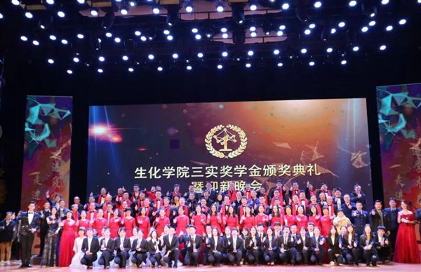 1月5日晚,生化学院三实”奖学金颁奖典礼暨迎新晚会于水晶剧举行。校党委副书记符宁平,浙江工业职业技术学院校长毛建卫出席,东方基因副总经理谭金凤、金石包装副总经理陈可信等企业代表也应邀参加典礼现场并与参会领导一起为获奖者颁奖。学校相关职能部门负责人、生化学院各系部中心主任、党支部书记、全体教职工、小和山校区全体学生和2018级安吉校区90余名学生代表参加了本次颁奖典礼。