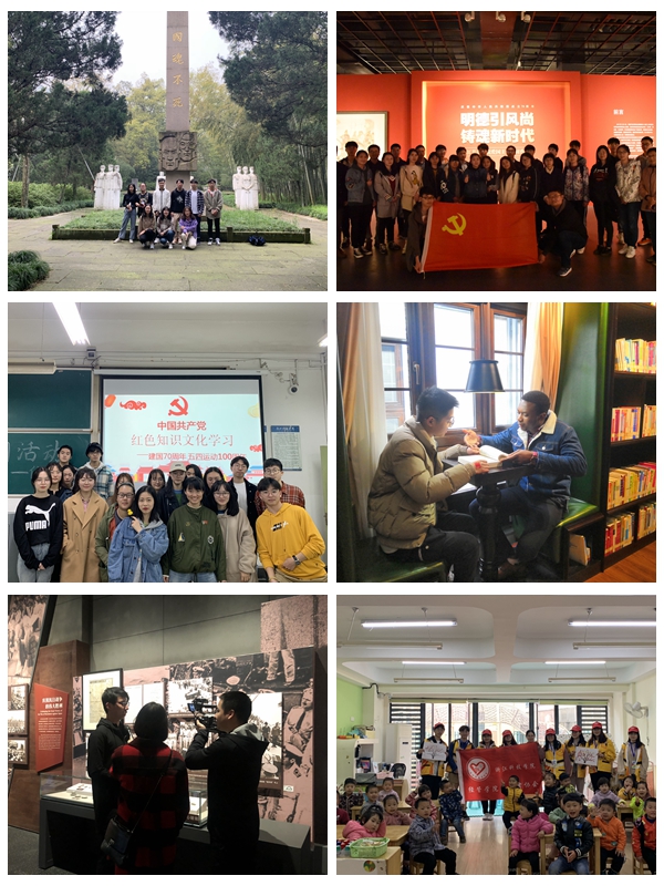 各团支部分别组织开展学习习近平新时代中国特色社会主义思想,浅谈当代青年的历史使命与责任,实地参观浙江革命历史纪念馆、“爱国主义教育基地”——富阳宋殿村受降厅和千人坑、浙江美术馆,开展征文、爱国题材电影配音比赛,为第五届中国数字阅读大会、关爱白血病儿童等活动提供志愿服务。各团支部形式多样、内容丰富的主题团日活动,鼓励青年学生铭记历史,不忘初心,诠释好新时代五四精神。