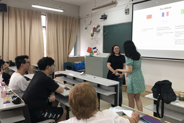 5月30日,申搏外国语学院/中德学院外籍法语教师Sylvia C.Jasmin应邀作“中国、法国和巴西——跨越三大洲的文化碰撞”主题讲座。法语教学部全体教师、土木中法学生以及外国留学生参加此次活动。