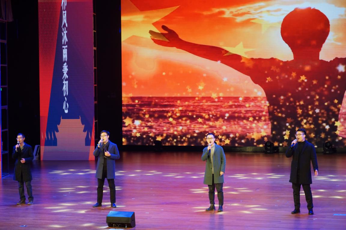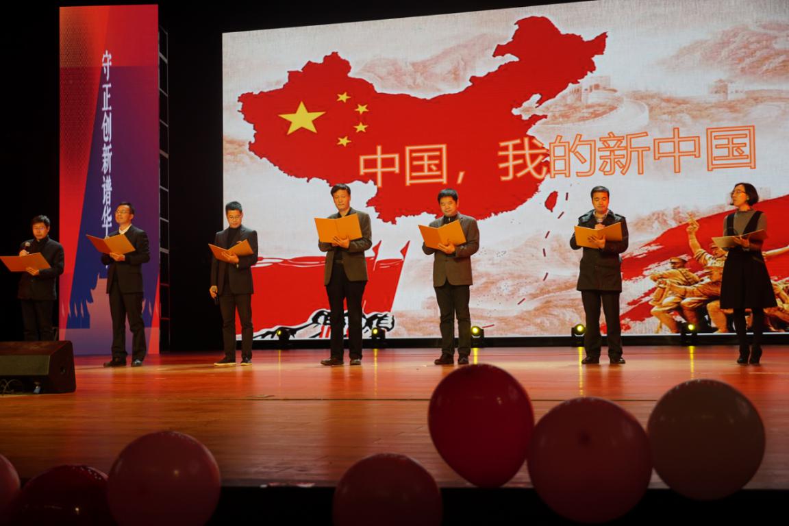 本次晚会主题为“织梦七十年,星火筑华章”,共分为栉风沐雨秉初心、守正创新谱华章、风劲扬帆再启航等3个篇章。乐起舞动,舞蹈《芳华》一开场就吸引了全场的目光,娴熟的舞步、诗意的剧情、悠扬的旋律,无不感染着在场的每一位观众。学院辅导员合唱的《我们都是追梦人》,不仅展示了辅导员群体多才多艺的才华,拉近了与学生的距离,更彰显了青年教师的蓬勃朝气和追梦之心。由学院党政班子深情朗诵的《中国,我的新中国》,不仅让观众回想起百年前的风云激荡,更深切体会到幸福生活来之不易及七十年来发生的翻天覆地的变化。