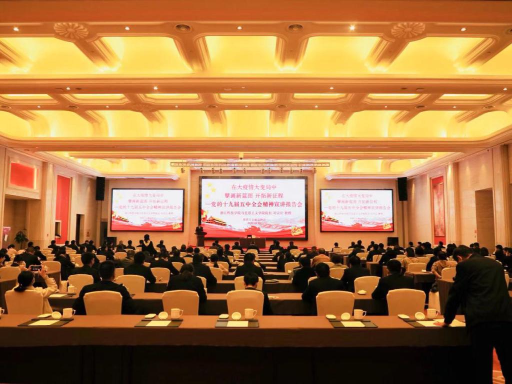 11月25日,申搏十九届五中全会精神宣讲团成员、马克思主义学院院长刘宗让教授应邀赴慈溪市金融业协会宣讲党的十九届五中全会精神,慈溪市金融业协会各会员单位主要负责人、中层干部代表等近200人参加了宣讲报告会。