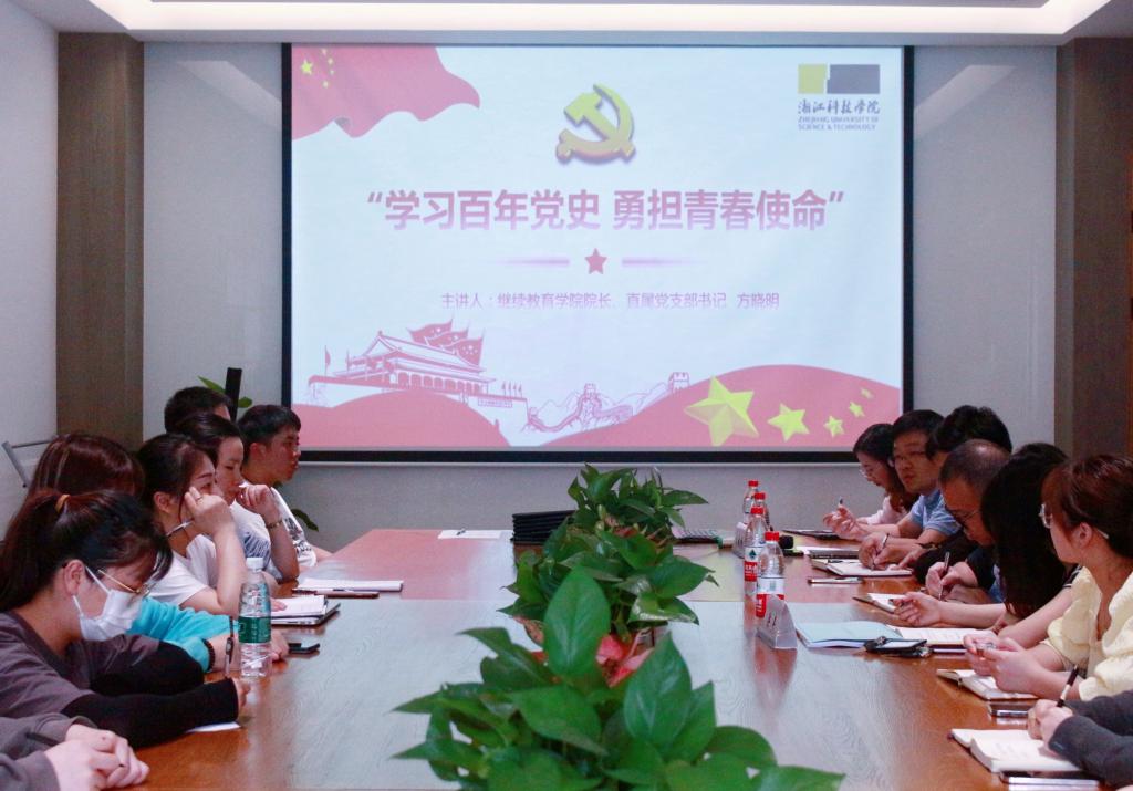 5月13日下午,继续教育学院举办党史学习教育专题理论宣讲会,继教院院长、直属党支部书记方晓明主讲题为“学习百年党史,勇担青春使命”的五四专题党课。
