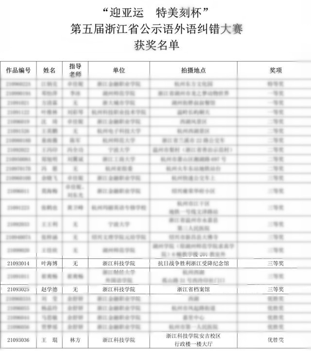 近日,“迎亚运 特美刻杯”第五届浙江省公示语外语纠错大赛成绩公布,外国语学院教师赵学德、中德学院德语18级学生叶海博获三等奖,中德学院德语20级学生王琨获优胜奖,中德学院林方获得优秀指导老师奖。