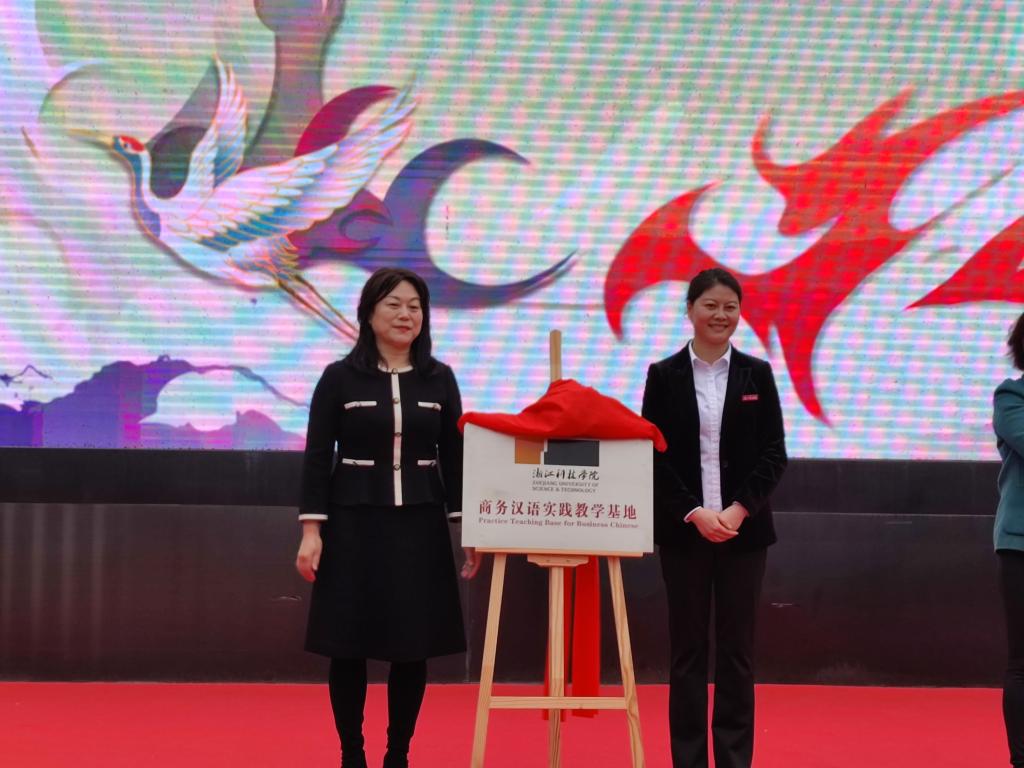 11月17日,人文学院院长叶晗与浙江商业职业技术学院国际交流学院院长黄益琴共同为“浙江科技学院商务汉语实践教学基地”揭牌,代表着申搏将在汉语国际教育领域与该校进行更深层次的交流与合作。