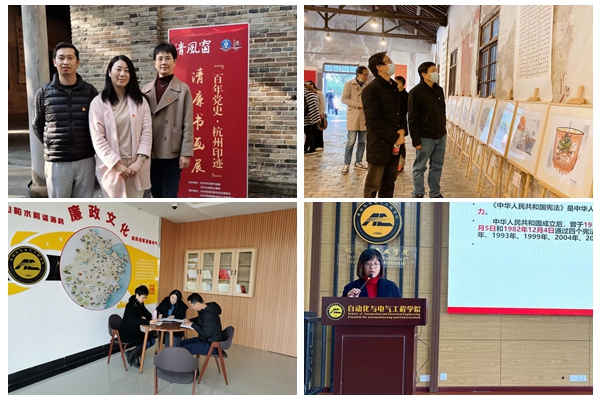 学院纪委通过组织学院教师参观西溪“百年党史▪杭州印记”廉政主题书画摄影展,进一步筑牢每位教师拒腐防变的思想防线;通过纪委班子集体专题学习党的十九届六中全会精神,进一步强化政治自觉,提升执纪水平;通过邀请校纪检监察室副主任田锦为学院全体教工做宪法、监察法、政务处分法专题宣讲,弘扬宪法精神,涵养法制意识。