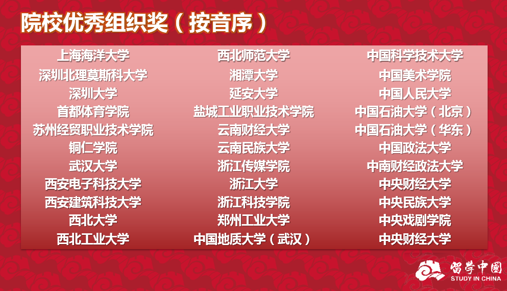 此次活动由教育部国际合作与交流司主办,教育部留学服务中心承办,旨在促进不同国家青年一代的人文交流,展示各国来华留学生风采,发掘留学生朋友们感人至深的中国故事。本次征文大赛于今年5月正式启动,征文大赛共收到来自全国100余所高校及个人投稿征文作品600余篇,短视频大赛共收到全国70余所高校及学生个人投稿视频作品400余件。(国际教育学院 高志胜)