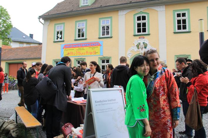 2015年5月31日,德国埃尔福特孔子学院应邀参加由伊尔梅瑙国际学生周组织委员会举办的国际学生周活动,活动的主要目的在于促进世界各个国家学生间的相互交流,加强相互间的理解与宽容,以此更好地推进世界文化的融合。活动吸引了来自中国、俄罗斯、巴西、乌克兰、阿拉伯等世界70多个国家的国际学生,德国埃尔福特孔子学院则代表中国受邀参加这个活动。