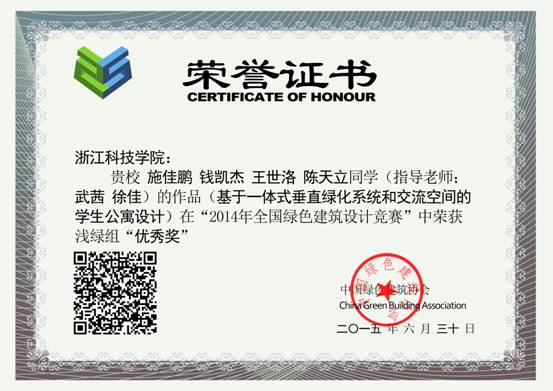 浅绿组优秀奖《基于一体式垂直绿化系统和交流空间的学生公寓设计》——团队成员:施佳鹏 钱凯杰 王世洛 陈天立,指导老师:武茜 徐佳 。 |