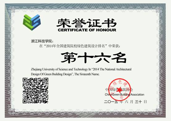 2014年申搏师生踊跃参与第五届“深绿设”全国绿色建筑设计竞赛,共有1个优秀作品获奖,在全国建筑院校绿色建筑设计排名获得第16名的优秀成绩。(详见:2014年全国建筑院校绿色建筑设计排名)同时,武茜老师获得全国建筑院校绿色建筑设计优秀教师综合排名第20名,徐佳老师获得全国建筑院校绿色建筑设计优秀教师综合排名第20名。