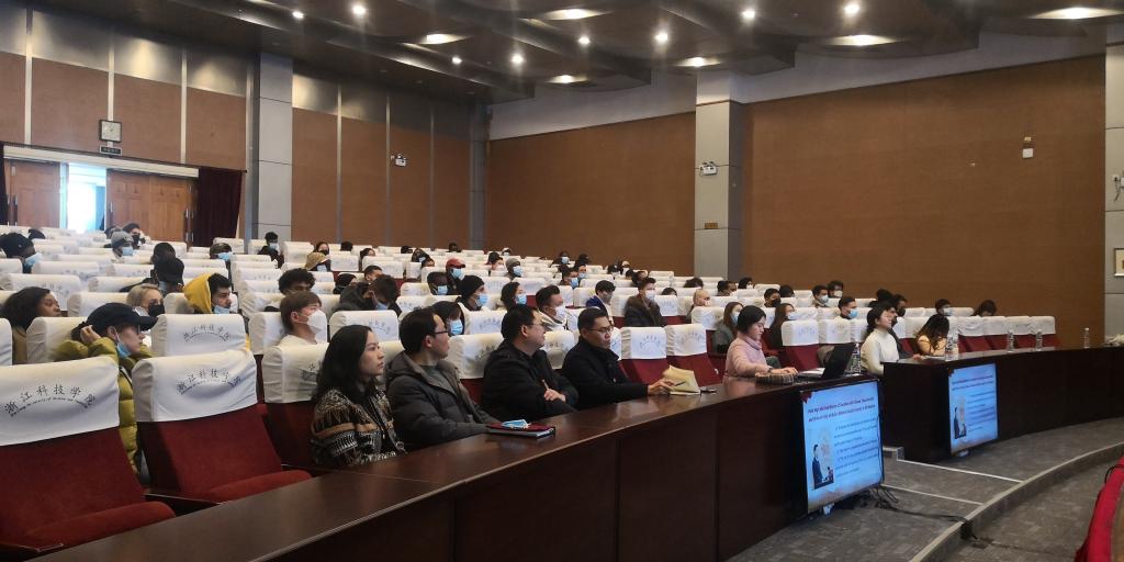 浙江理工大学国际教育学院、申搏组织部、宣传部、国际教育学院相关负责人参加宣讲活动。申搏百余名国际学生代表及国际学生辅导员认真聆听宣讲。