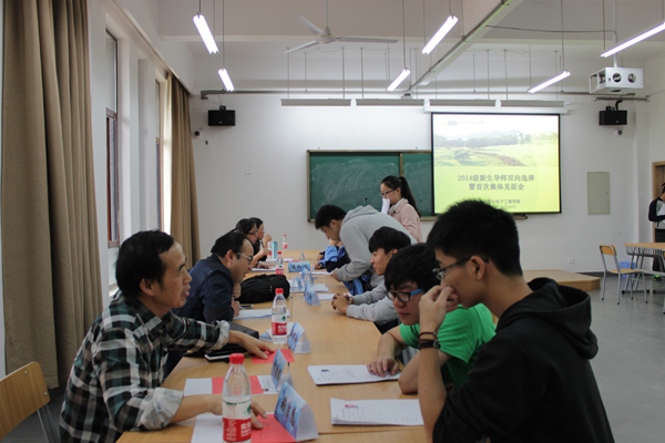 学校在安吉校区学生管理中推行书院制、导师制,信息学院创新推出“自愿参加、双向选择”模式。老师自愿报名出任导师,双选会前,同学收到了一份导师信息汇总表,可以提前了解每一位老师的研究领域与专长,结合自己的兴趣来选择自己心仪的导师。随后,同学们纷纷自带简历排队到导师处进行自我介绍,畅谈自己的兴趣爱好、今后学习打算、职业规划等,极力地将自己的“最好的一面”展现在导师面前,只希望从导师口中听到一句“I want you”。导师通过面对面的交流了解学生,确定自己的指导学生,避免了“纸上谈兵”。选择完毕的导师,有的当场建了联系QQ群,有的开始了“第一课”。