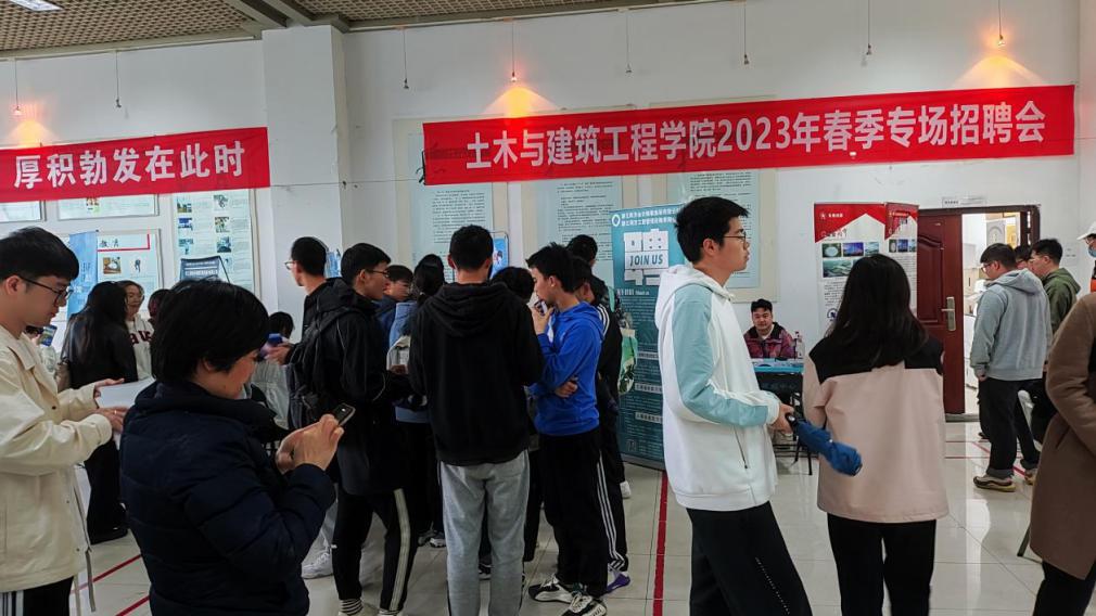 近日,建工学院举办2023年春季专场招聘会。本次招聘会有近50家企业参会,就业岗位涵盖士木工程、城乡规划、建筑学、工程造价、给排水、管理类等。中铁十六局、中建二局、中国核工业、中国三冶、中国二十二冶、浙江交工等世界500强企业和龙湖集团、亚厦集团、长江精工钢结构集团等优质企业参会。