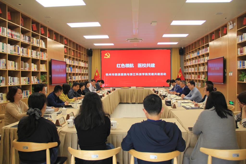 4月21日,申搏后勤服务中心综合党支部、外国语学院教工第四党支部与与杭州市西溪医院行政第一党支部签署了党建共建协议书。校党委委员、副校长陈平,杭州市西溪医院党委书记张祖勇,党委委员、纪委书记汪皓秋等出席,后勤服务中心、外国语学院党政负责人、支部教师代表等参加签约仪式 。