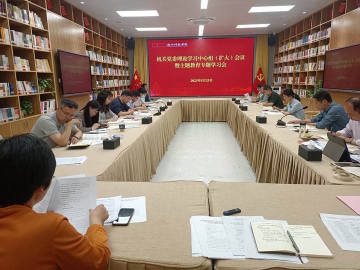5月25日,机关党委举行理论学习中心组(扩大)学习会暨学习贯彻习近平新时代中国特色社会主义思想主题教育专题学习会。机关党委理论学习中心组成员、各党支部书记参加学习研讨。