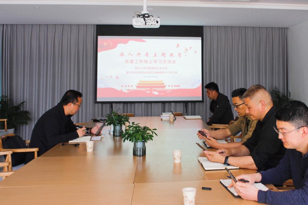 5月23日上午,党支部联合温州大学机关党委第十四支部开展线上交流活动,双方支部委员通过视频会议交流研讨。双方介绍各自党支部党建工作开展情况,结合《新时代高校党建“双创”工作重点任务指南》要求,就后勤党建样板支部创建工作开展深入交流。