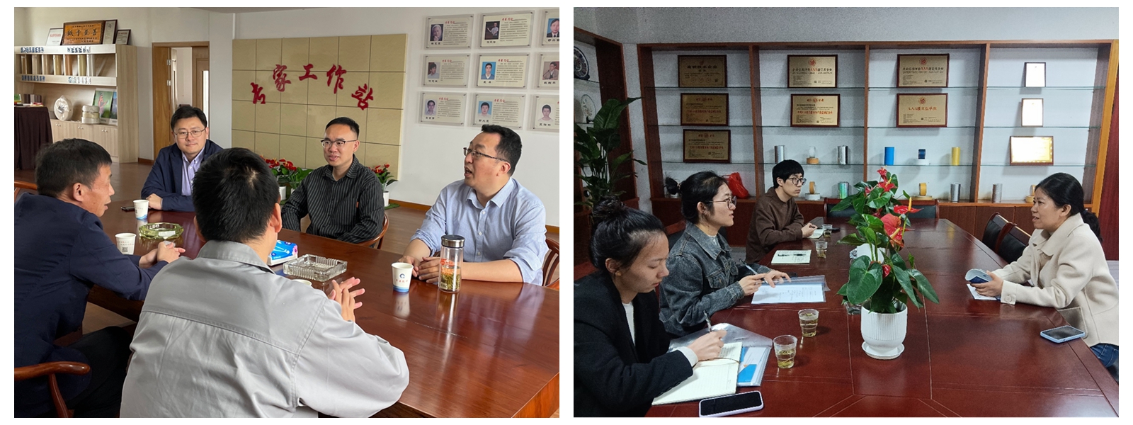在浙江金昌特种纸股份有限公司、浙江龙游辰港宣纸有限公司,学院班子成员及轻化工程系党员教师与企业负责人围绕加快推进龙游县特种纸产业整体发展及未来规划进行交流。在浙江满德新材料特种纸有限公司,党员博士了解到企业在烟用接装纸甜味剂检测方面存在困惑,详细了解有关产品情况后,从检测标准、仪器设备及质量指标几个方面给出建议,并表示后续会持续关注此问题,定期回访。走访金泽纸业时,党员博士获悉企业在人员招聘上存在较大问题,经常出现找人难、留人难的情况,党员博士向企业负责人介绍了以环资学院轻化工程系为主的院系学生培养情况,并表示在后续工作中将大力帮助企业做招聘宣传,积极联系有意向的同学到金泽纸业发展。