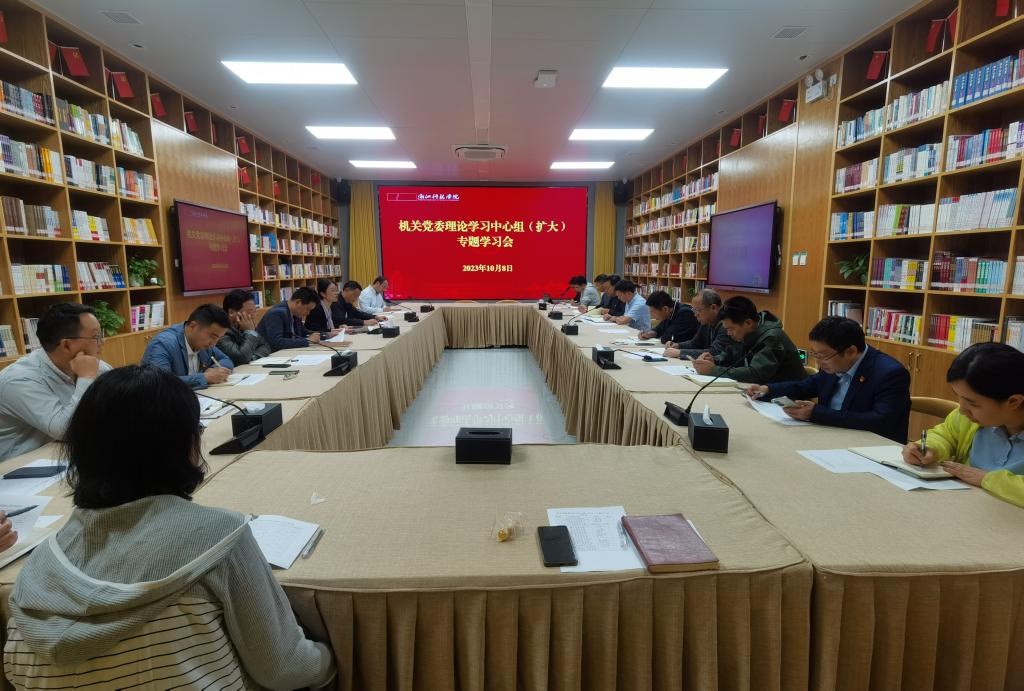 10月8日,机关党委召开理论学习中心组(扩大)专题学习会,专题传达学习习近平总书记考察浙江重要讲话精神。机关党委副书记(主持工作)主持学习会,机关党委理论学习中心组全体成员、机关各党支部书记参加学习会。