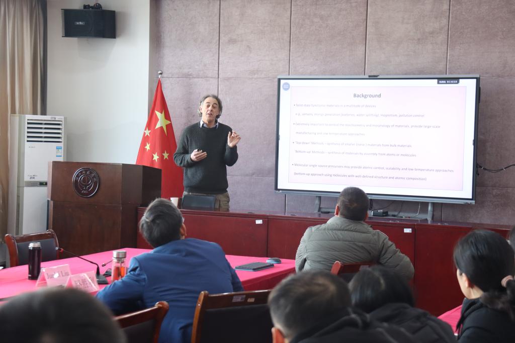 12月21日,剑桥大学Dominic Simon Wright教授应邀,来校作题为“Design Strategies for Single-Source Precursors for Photoactive Materials”(光敏材料单来源前驱体的设计策略)的专题报告。