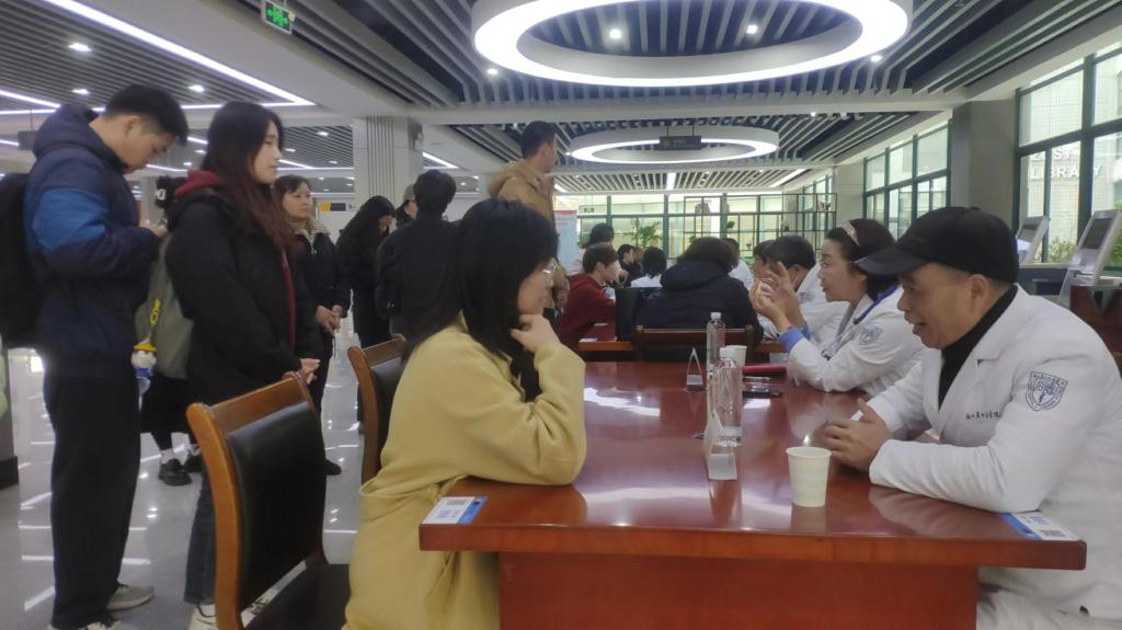 来自省立同德医院的医学专家为前来咨询的师生提供了健康咨询与现场问诊服务,测血糖、做心电图,医生们前面排起了长队。当天,还举行了急救知识讲座,并进行心肺复苏实践。
