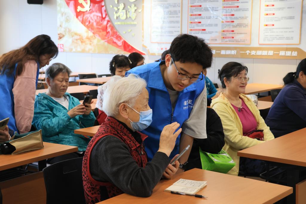 老人们听得认真仔细,大家拿着手机,向志愿者们提出自己在使用智能手机过程当中所遇到的问题,志愿者针对大家提出的问题为大家详细耐心地解答,还通过实际操作演示给老人们看,让老人们更加直观地了解如何操作。