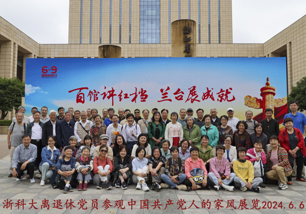 6月6日,离退休党委组织全体党员前往浙江省档案馆参观“中国共产党人的家风”档案展。