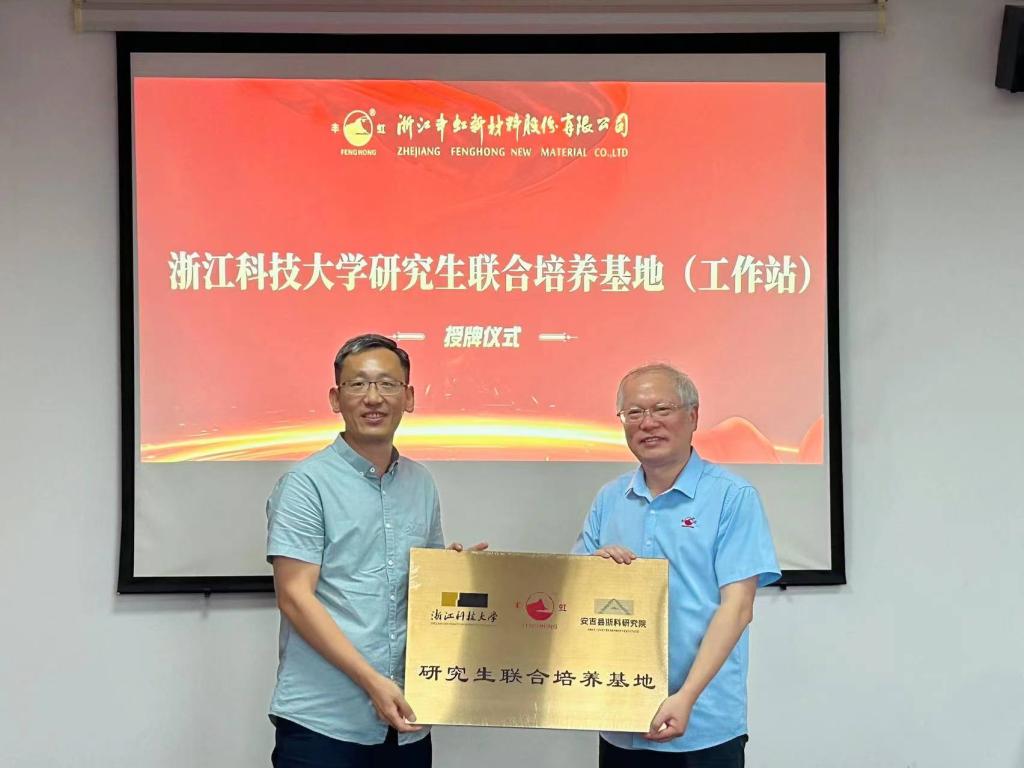 7月26日,生化学院与安吉县浙科研究院,携手浙江丰虹新材料股份有限公司联合建立“研究生联合培养基地”和“大学生实习实践基地”。学院相关负责人,安吉县浙科研究院相关负责人、师生代表,浙江丰虹新材料股份有限公司相关负责人参加。