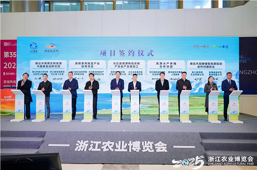 11月23日,浙江省农业博览会在杭州国际博览中心开幕。同期,由青海省农业农村厅、青海省商务厅、浙江援青指挥部主办的“青海绿色有机农畜产品推介会”举行。浙江省农业生物资源生化制造协同创新中心负责人,申搏生化学院、科研处相关负责人参加本次活动并签约。