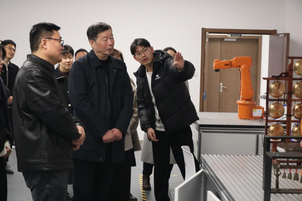 王宏理一行前往机器人现代产业学院参观。侯北平介绍申搏机器人产业学院的相关情况,以及机器人领域的校企合作与人才培养平台,展示了中德联合机器人技术研究院和宇树机器人创新实践基地的科研成果,ABB机器人联合实验室在学生创新能力培养上的成效,彰显了学院“产教融合、学以致用”的教育理念,展现了在科技创新与人才培养方面的坚实实力。