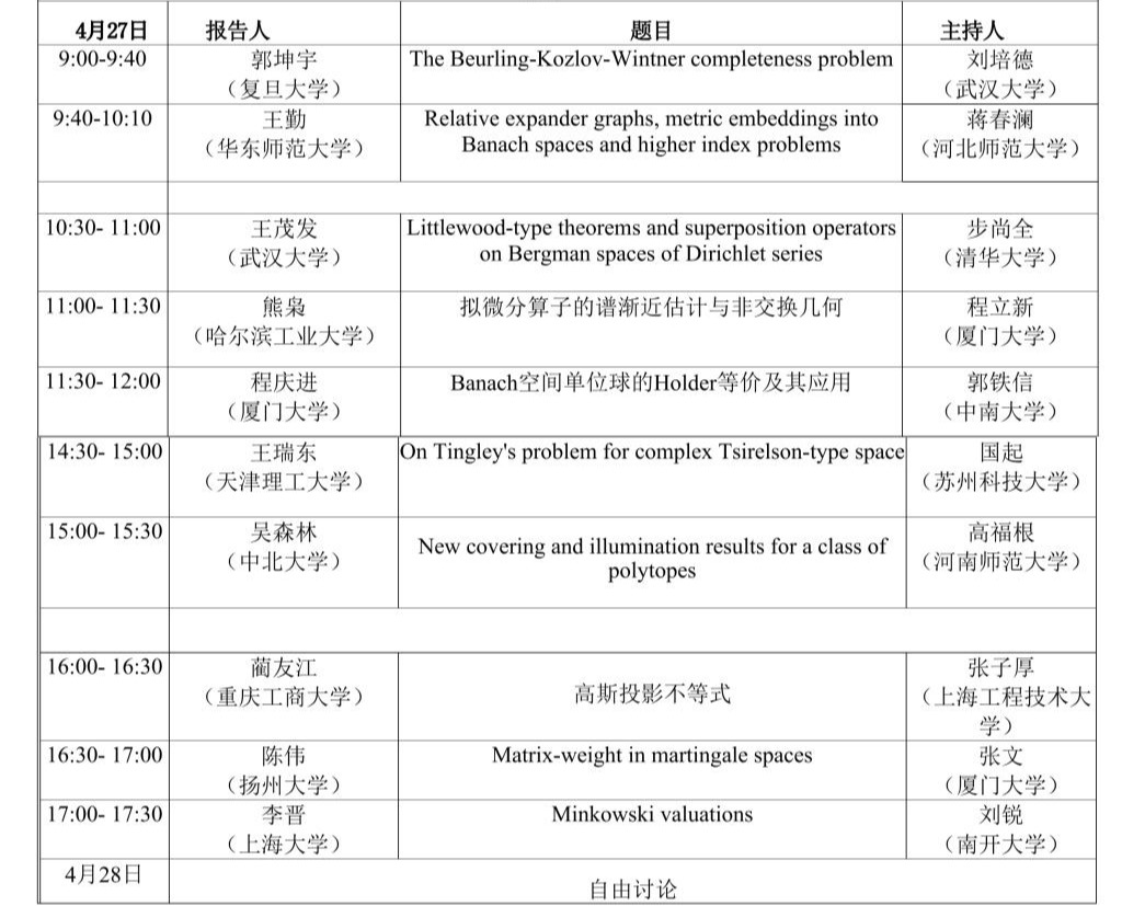 2024年泛函分析与几何研讨会日程