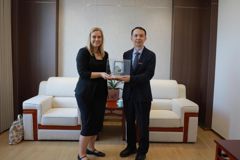 (10月17日,奥斯特法利亚应用科学大学校长向学校赠送两校合作纪念品)
