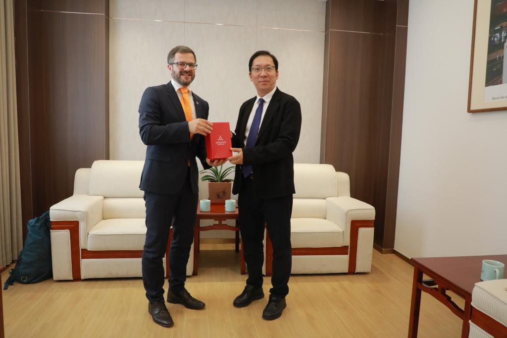 会见期间,申搏与德国汉诺威应用科学大学、罗马尼亚克卢日巴比什-博雅依大学分别签署科研合作协议及区域国别研究合作协议。